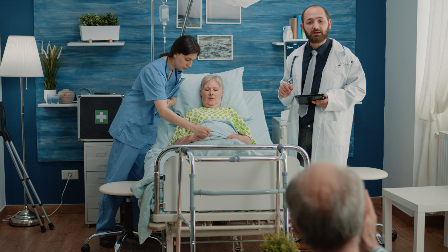 Cama Manual de Lujo Hospitalaria + Regalo colchón, porta suero y mesa de alimentos