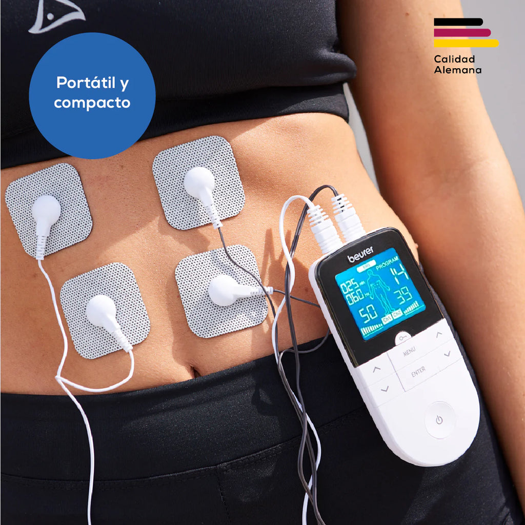 - 4 electrodos de gel autoadhesivos incluidos (45 x 45 mm)