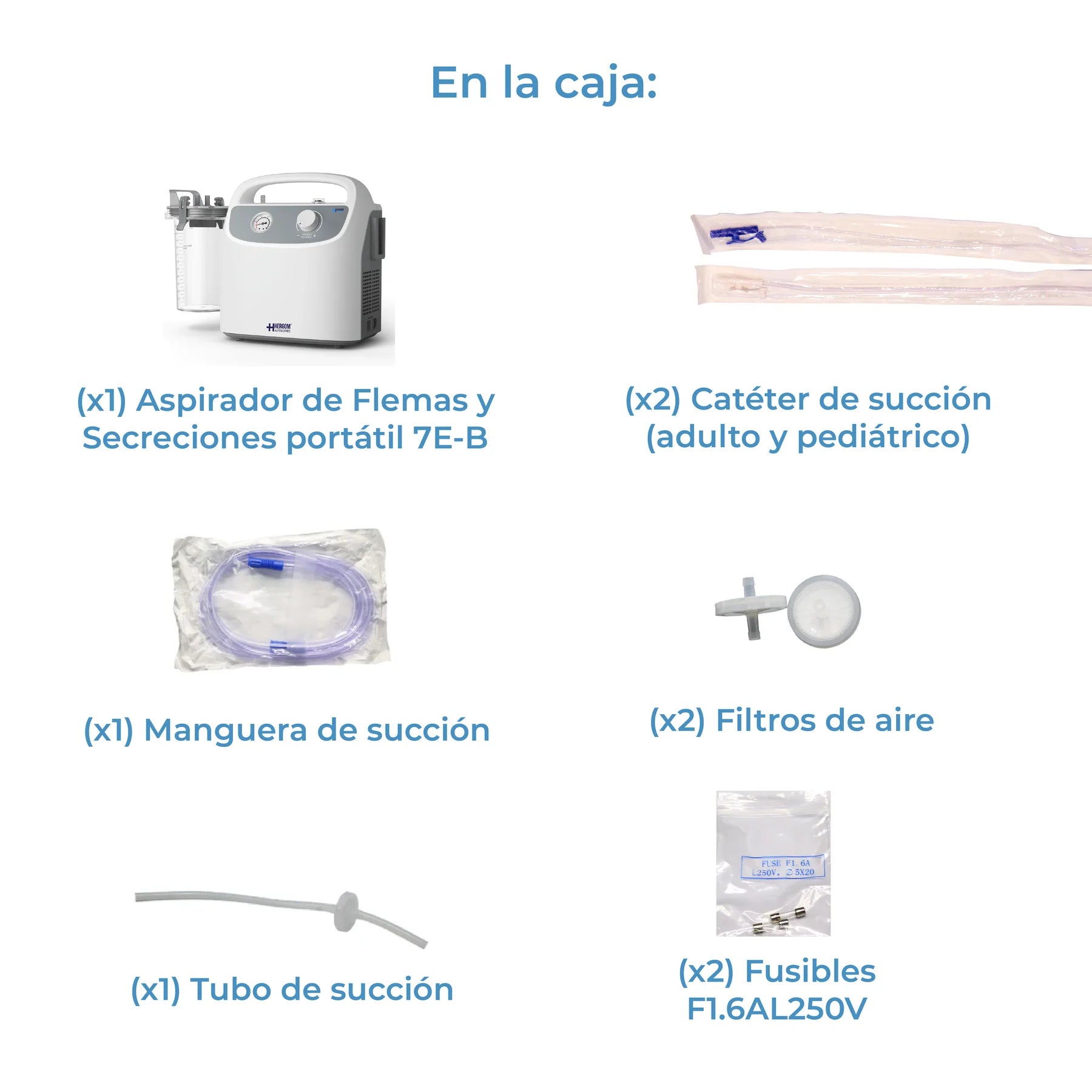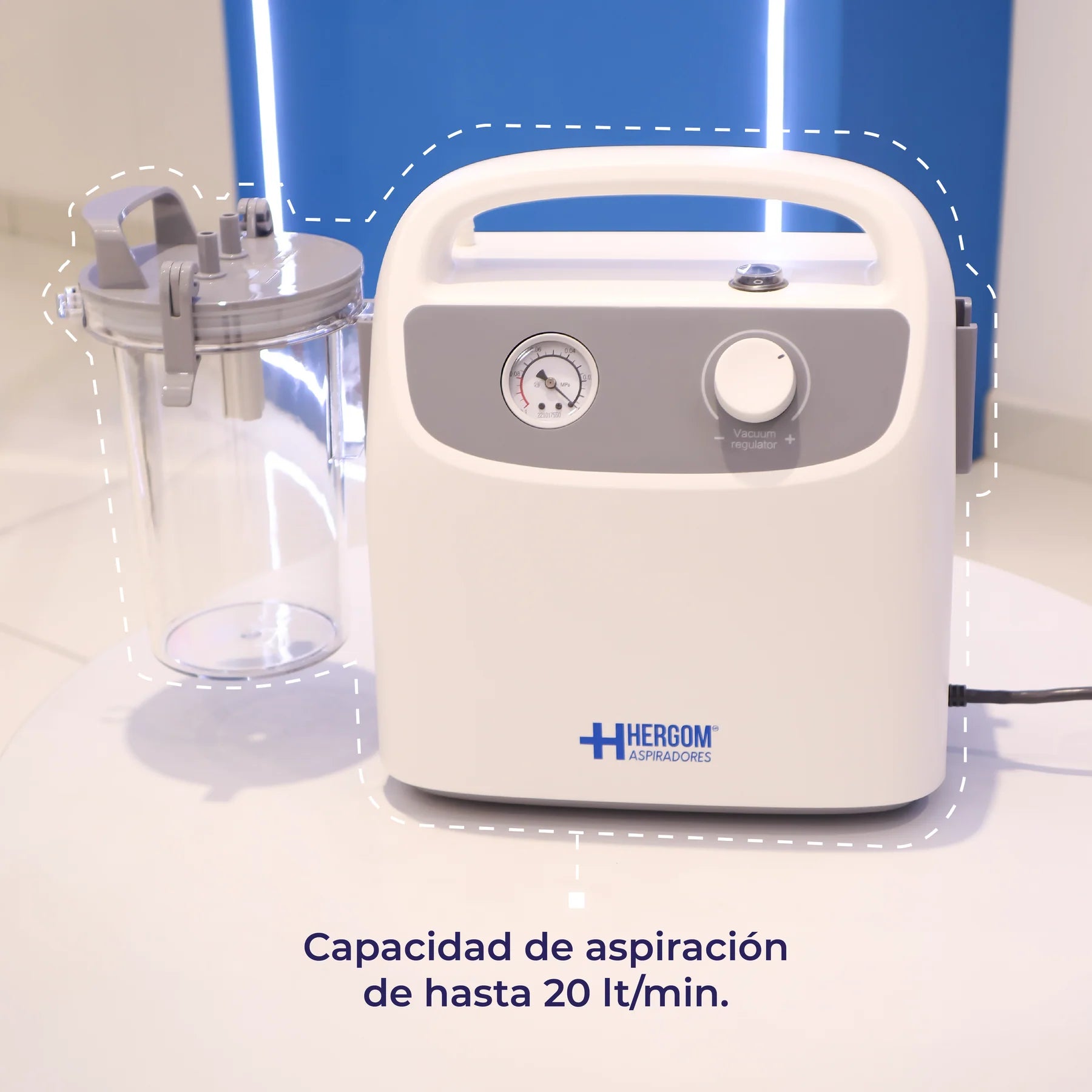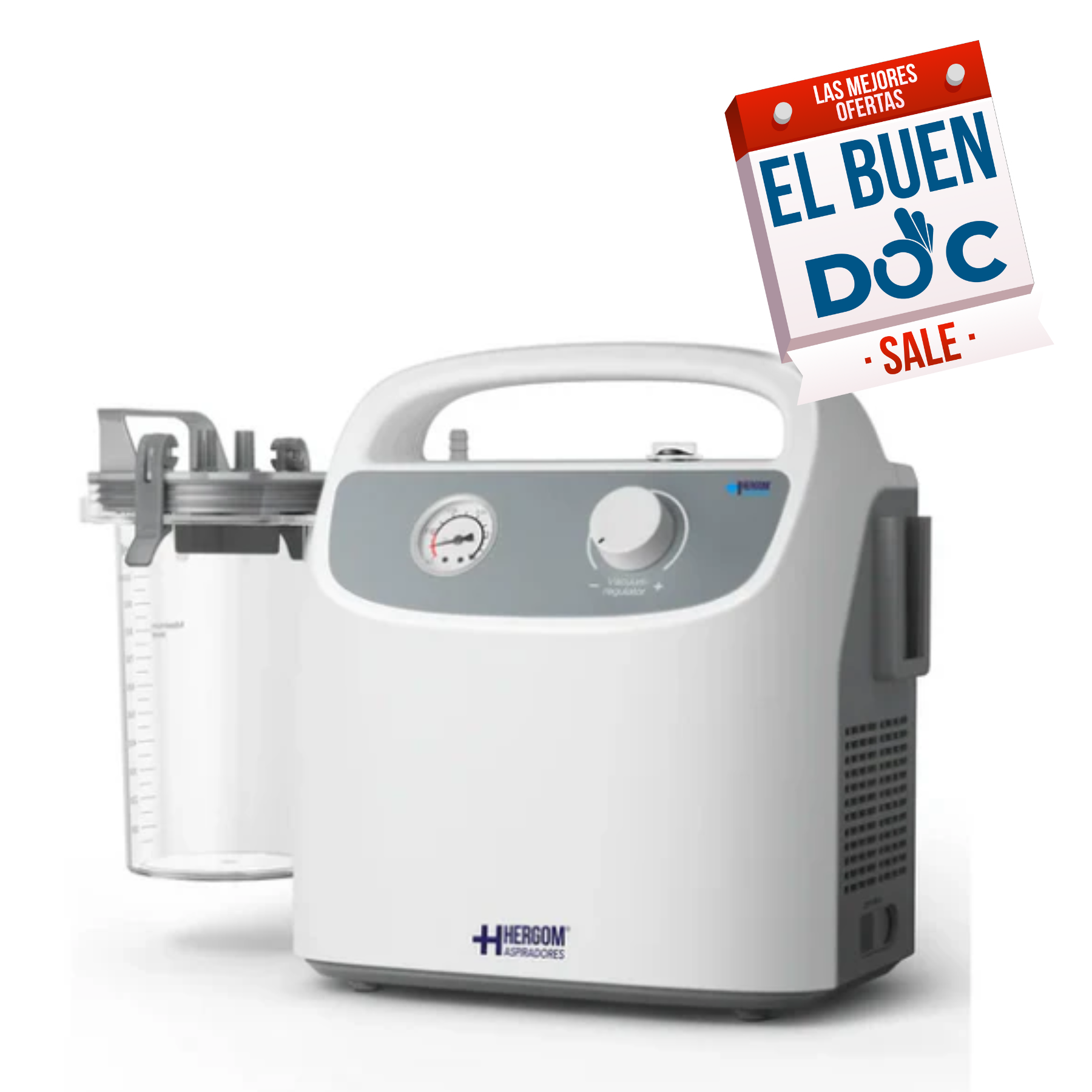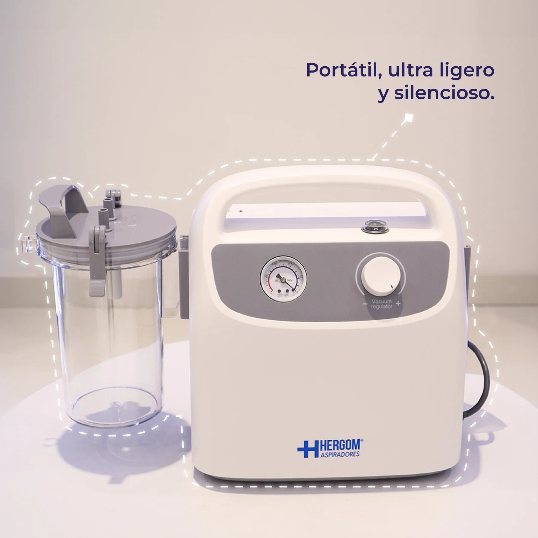 Aspirador de Flemas y Secreciones Portátil de Hasta 28 Litros por Minuto con Presión Regulable - Marca Hergom 7E-B
