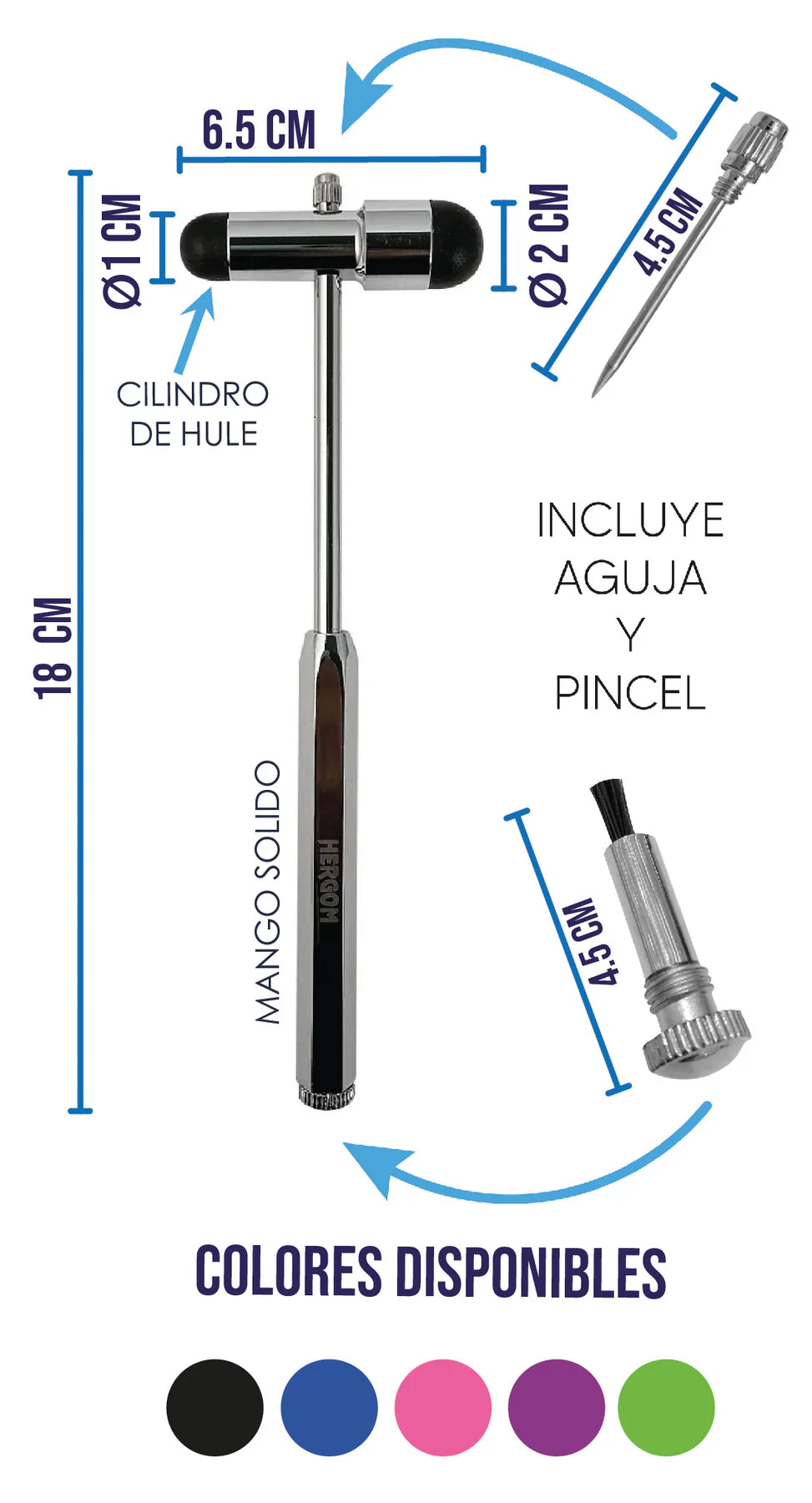• DOBLE CABEZAL DE GOMA REFORZADA: Proporciona durabilidad y precisión en las pruebas de reflejos.