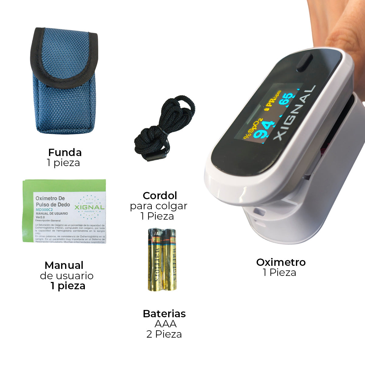 Oxímetro Digital de pulso para uso adulto y pediátrico, color gris/blanco - Marca Xignal