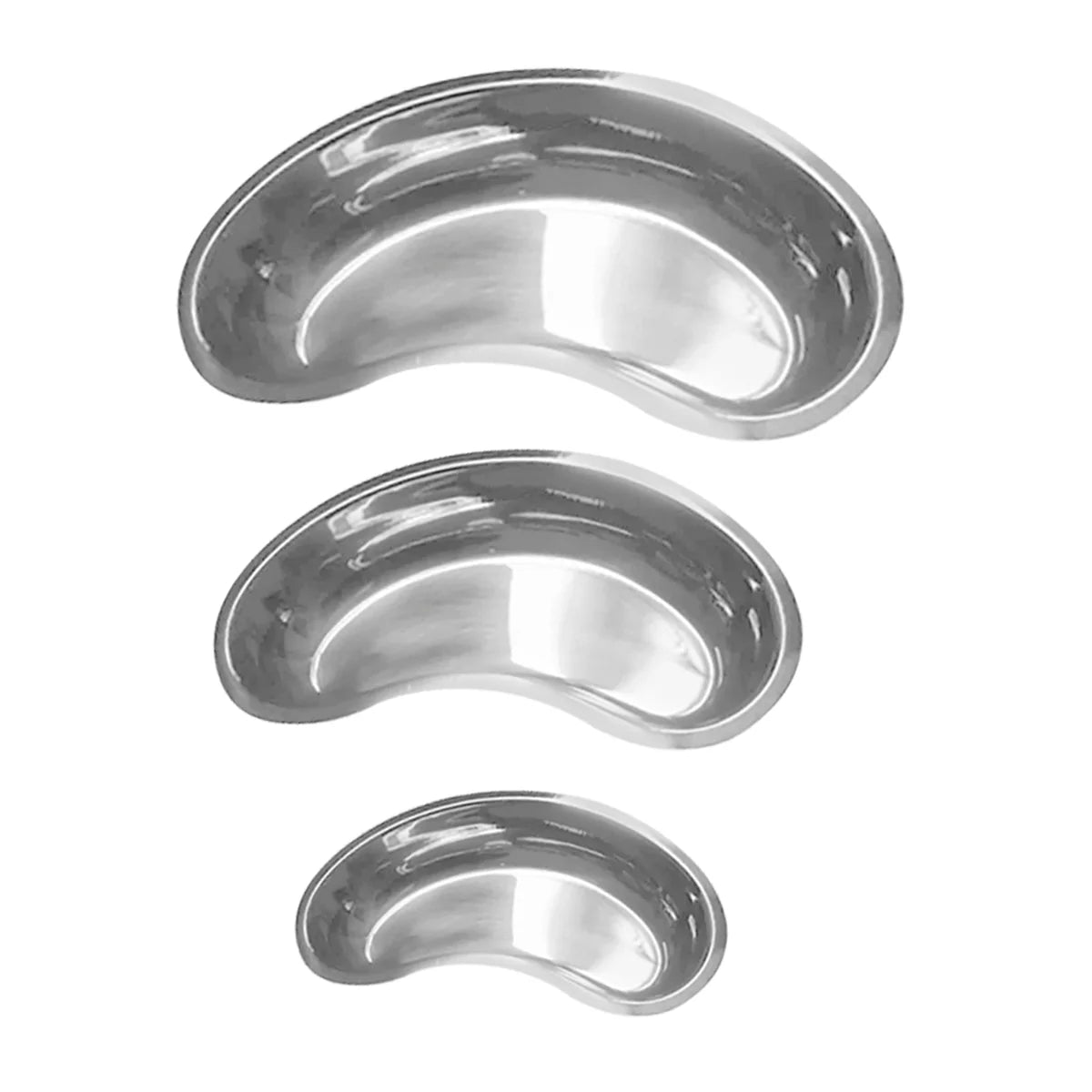 Riñonera para instrumental médico de acero inoxidable alemán, tamaños chico (250 ml), mediano (350 ml) y grande (850 ml). Perfecta para uso en clínicas y hospitales.