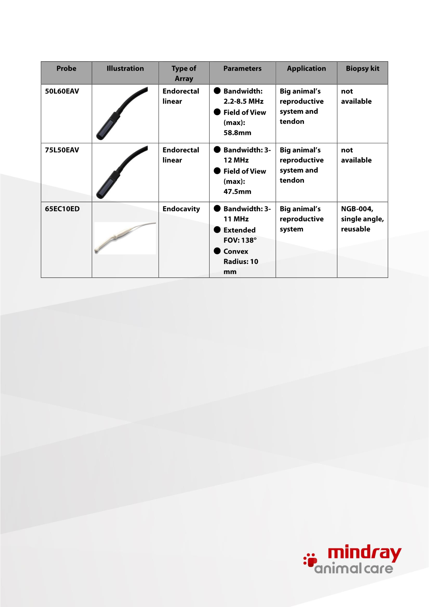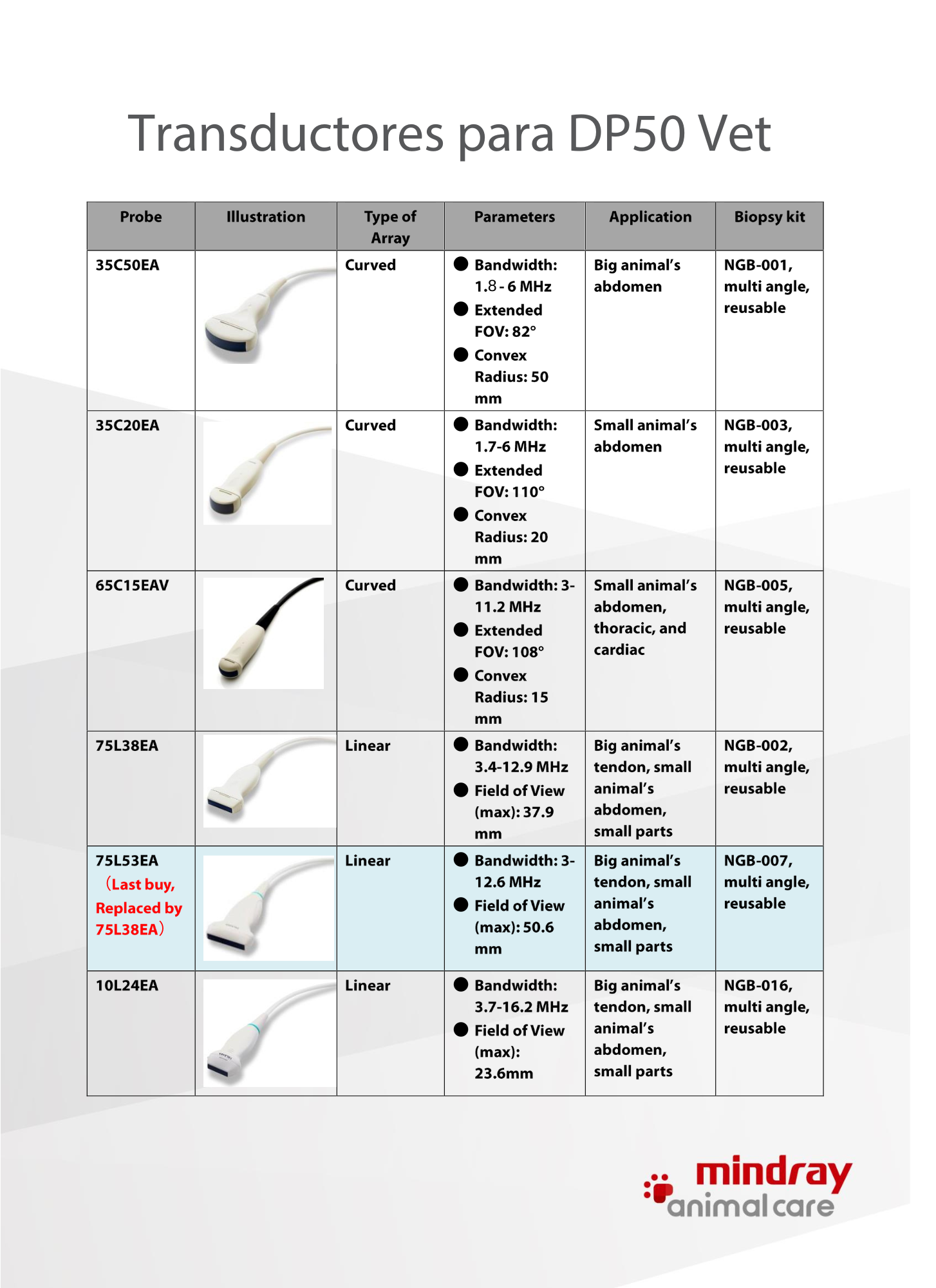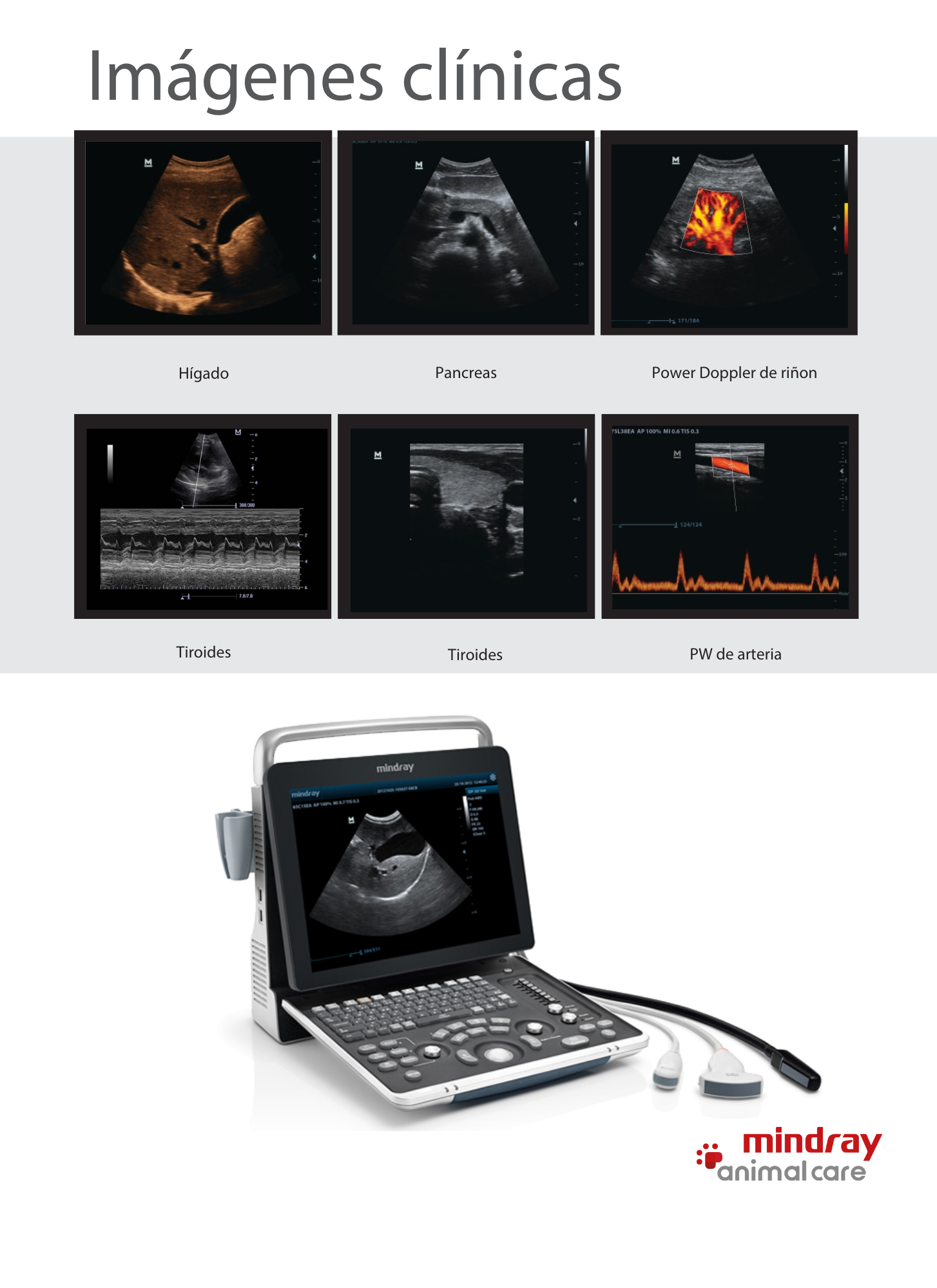 - Con modos de imagen: B/M/PW y/o Doppler COLOR / POWER Doppler opcional